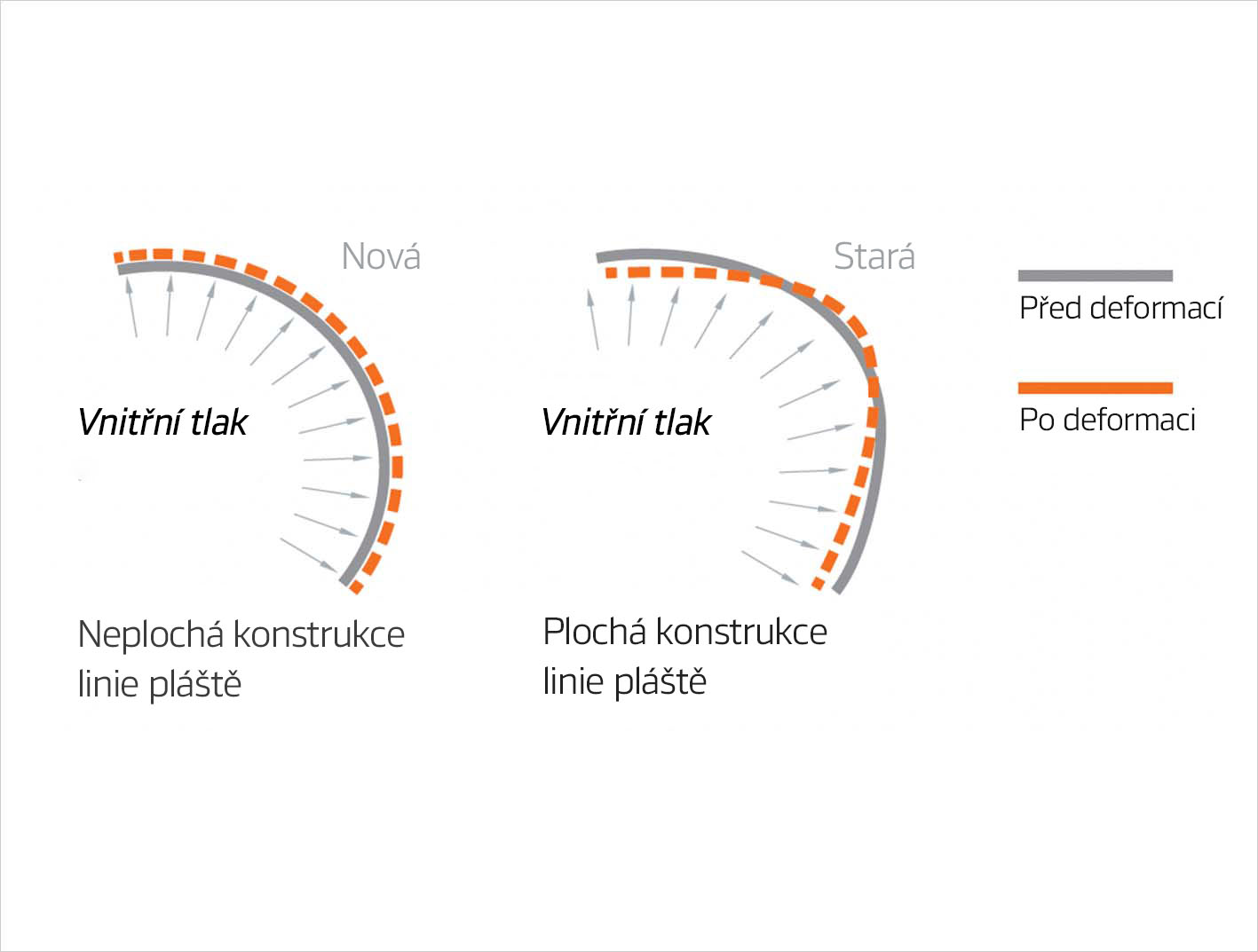 Struktura kostry : Minimalizovaná deformace pneumatiky s optimalizovaným tvarem patky zajišťuje kontrolu na nerovném povrchu.
