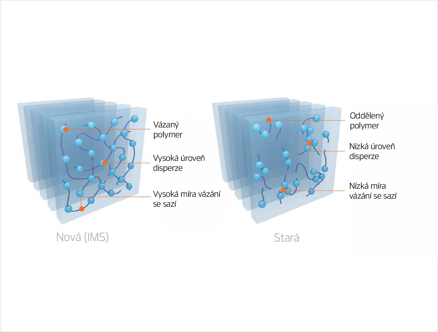 Inovativní mixážní systém (IMS) minimalizuje rozpad a oxidaci polymerních řetězců a má vyšší stupeň disperze sazí. Účinky systému IMS pomáhají posílit vazebnou sílu mezi sazemi a pryží, což zajišťuje delší kilometrový výkon a snižuje tvorbu tepla směsí pro lepší spotřebu paliva.