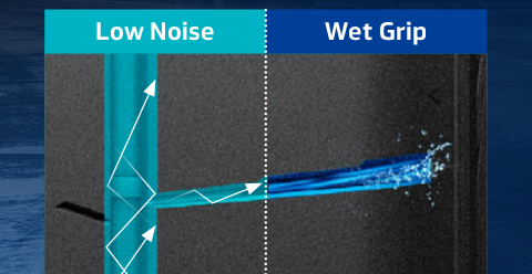 To prevent groove resonance while driving, the iON evo has optimised the size of grooves. Expanding the 2 grooves on the inside wider has also improved drainage performance.