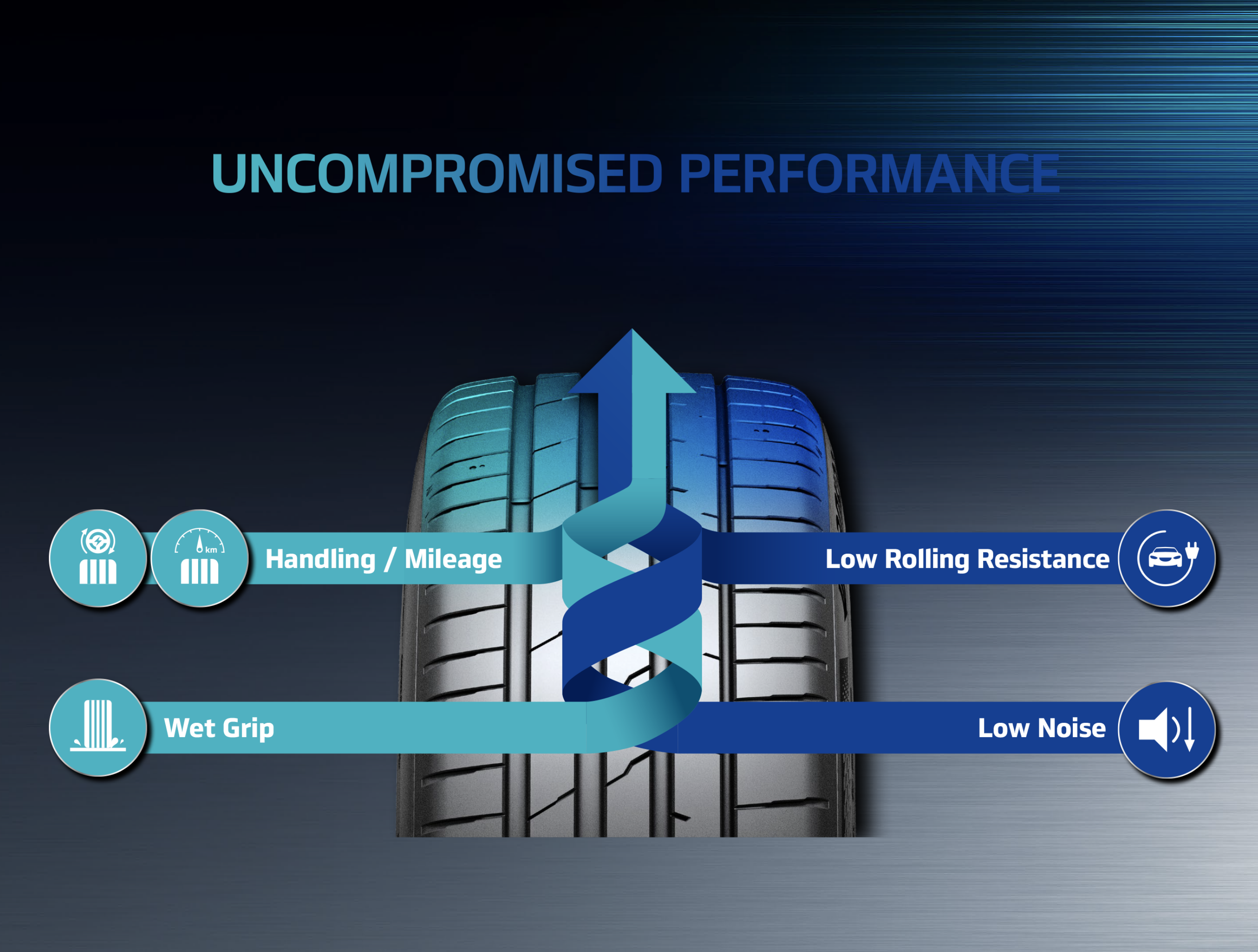 Hankook understands the concerns of loosing energy while driving Electric Vehicles. By reducing the rolling resistance, the battery lasts longer to drive a longer distance. A few miles can be crucial during an emergency.