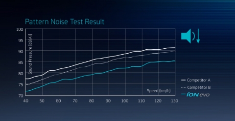 The iON evo achieved the highest grade of LRR performance by applying an advanced compound and Hankook tire’s optimised curing technology which improves all parts of the tire equally.